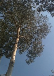 I felt a bit dizzy and reached out to a tree trunk to steady myself. The smooth semi-glossy trunk felt warm and dry and comforting. My hand said hello back to the winking trees and we were instant soul mates. I ran my hand around the white trunk, feeling the tiny knobs and pits and bumps, the wrinkles and warps. I kept looking up at the river of leaves above and the reaching white branches, the bit of blue sky peeking through. I was somehow back home in a home I’d never known. I was among friends I once knew, happy through to my toes.