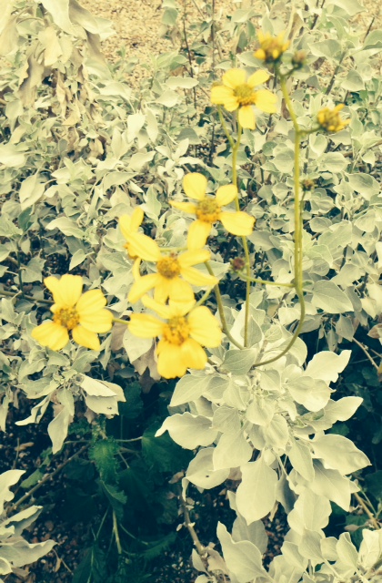A few valiant blossoms in the chill air of the desert.