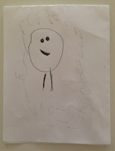 Ghost. (no arms) with writing, or mist, around the ghost.